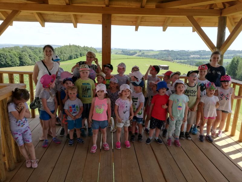 Następnie dzieci mogły bawić się w Parku Linowym „Małpi Gaj” a także zobaczyć piękną okolicę z wieży widokowej. Po krótkim spacerze przez las, nadszedł czas na obiad i słodkości, a po nich dalsza część uciech na świeżym powietrzu.