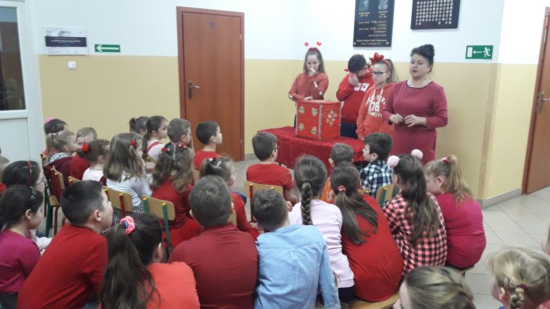 Gdy już skrzynka walentynkowa opustoszała, a wszystkie kartki zostały rozdane – uczestnicy tego przemiłego spotkania w radosnych nastrojach udali się na zajęcia.