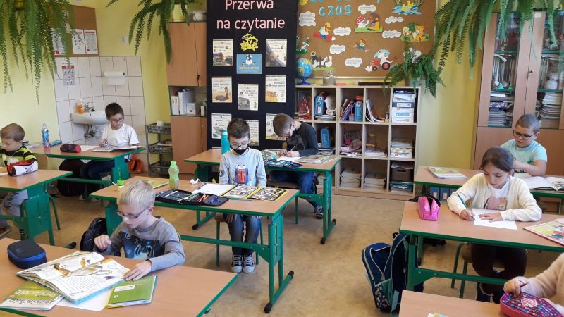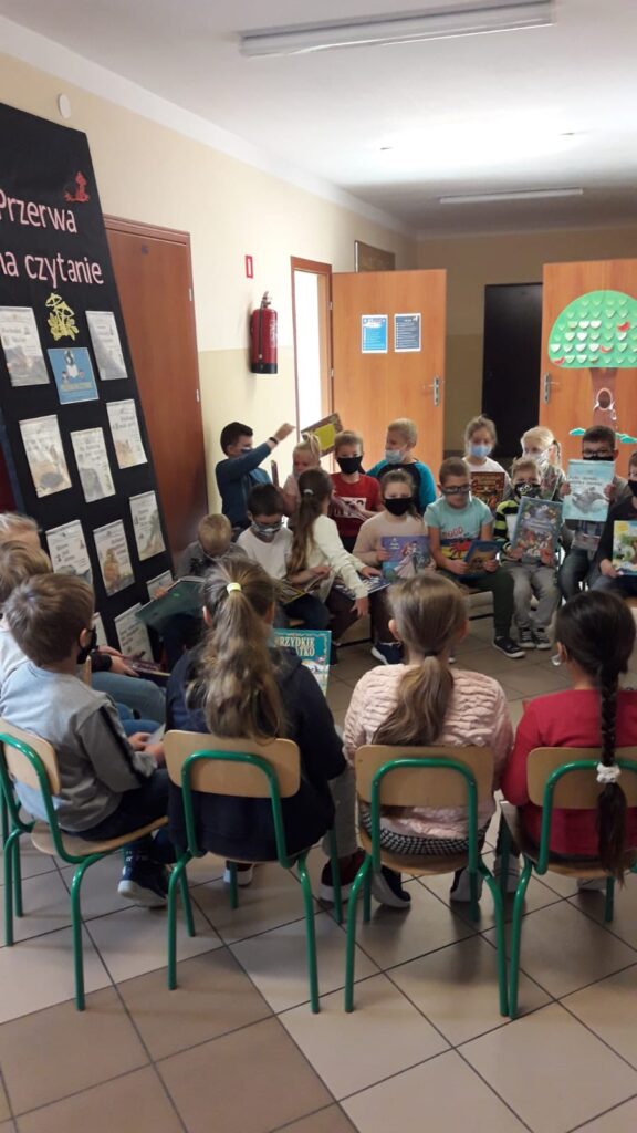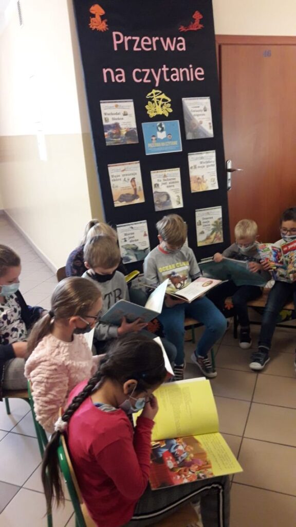 Starsi uczniowie czytali na wszystkich przerwach książki udostępnione z biblioteki szkolnej , bądź własne, przyniesione z domu.