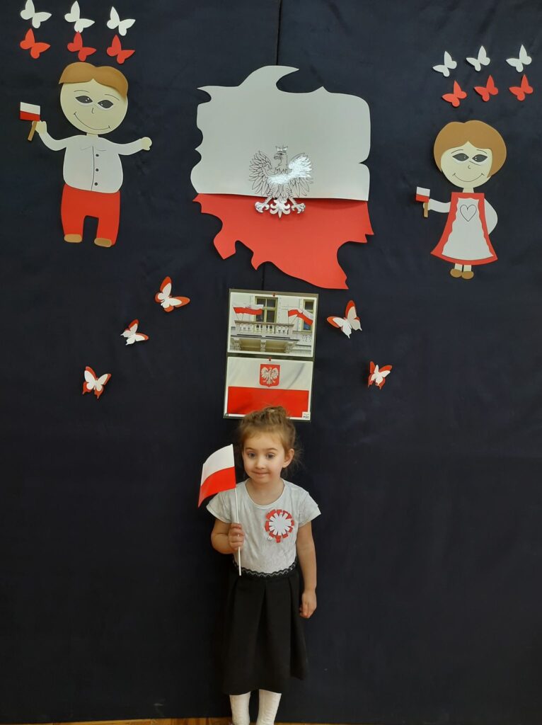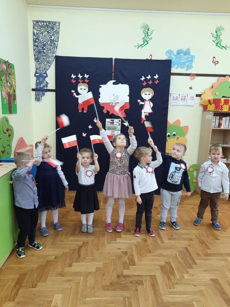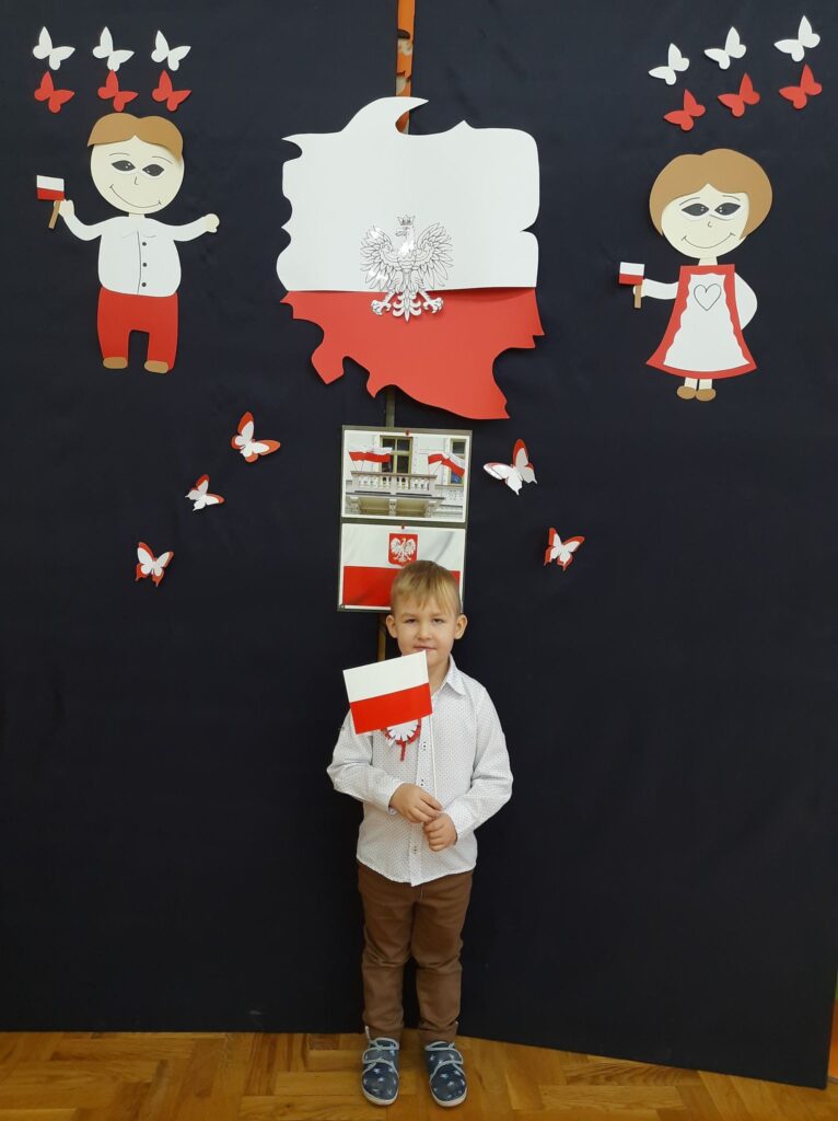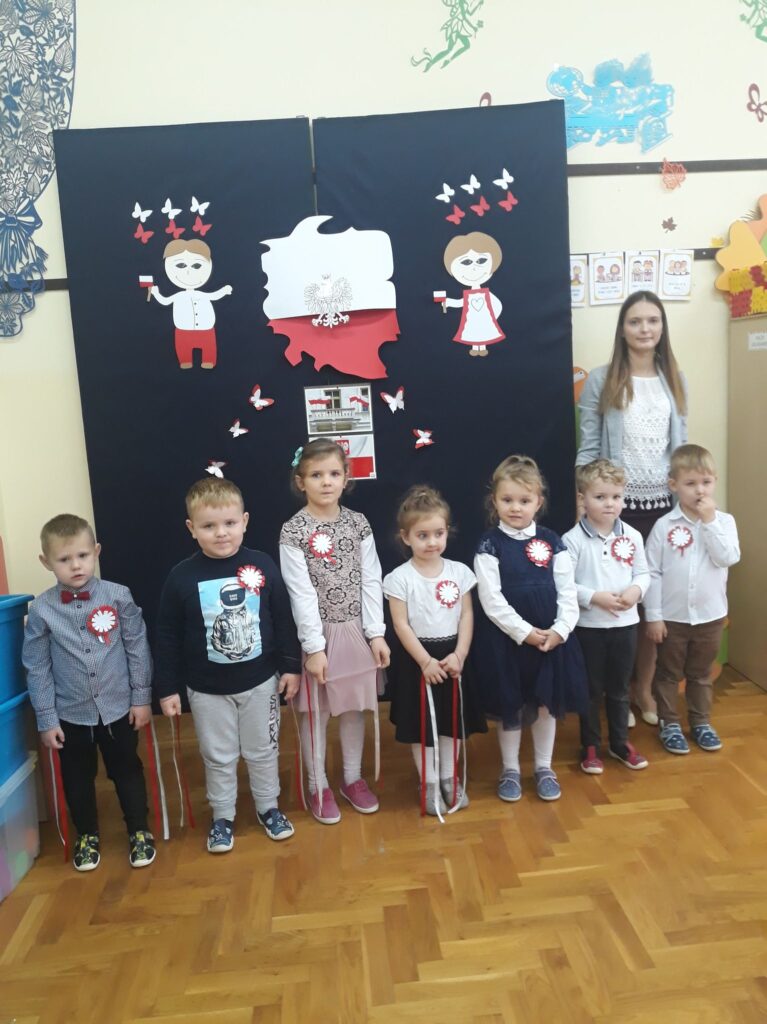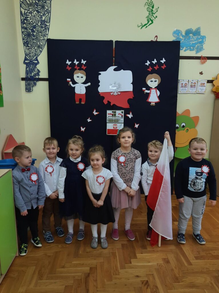 11.11.2020 r. z okazji 102 Rocznicy Odzyskania Niepodległości przez Polskę dzieci z przedszkola „Kraina Uśmiechu w Ostrowie” przedstawiły program artystyczny pt „Moja ojczyzna”. Pani Kinga Cichoń zadbała o piękną dekorację i odświętne stroje dzieci. Na program składała się patriotyczna piosenka oraz taniec. Przedszkolaki zaprezentowały występ dzieciom z oddziału przedszkolnego. Program bardzo im się podobał.  Na zakończenie przedstawienia dyrektor szkoły Grażyna Balawender podarowała wszystkim dzieciom chorągiewki, aby udekorowały swoje domy.