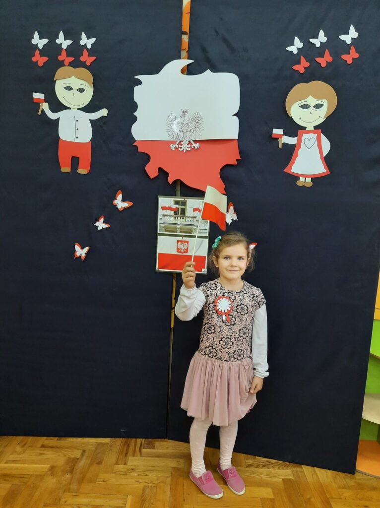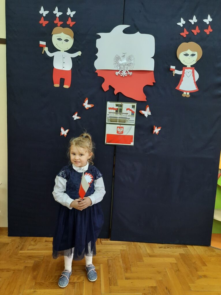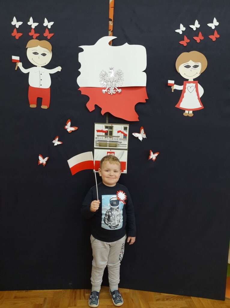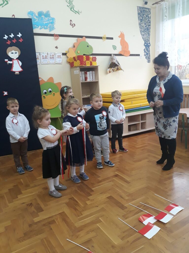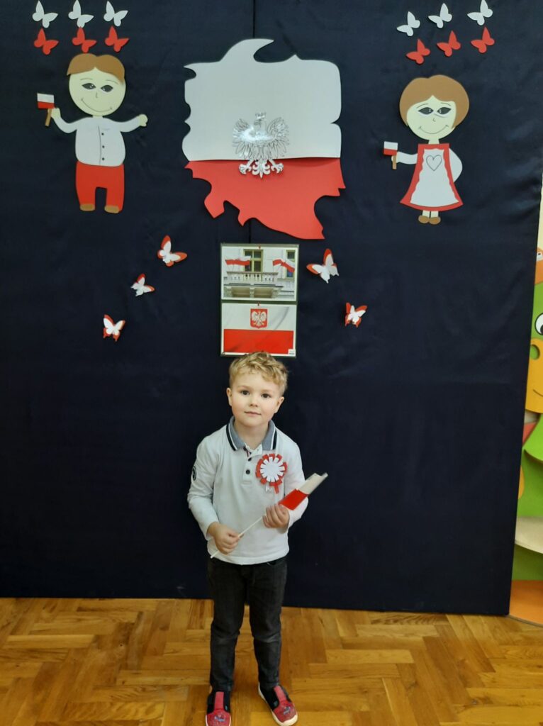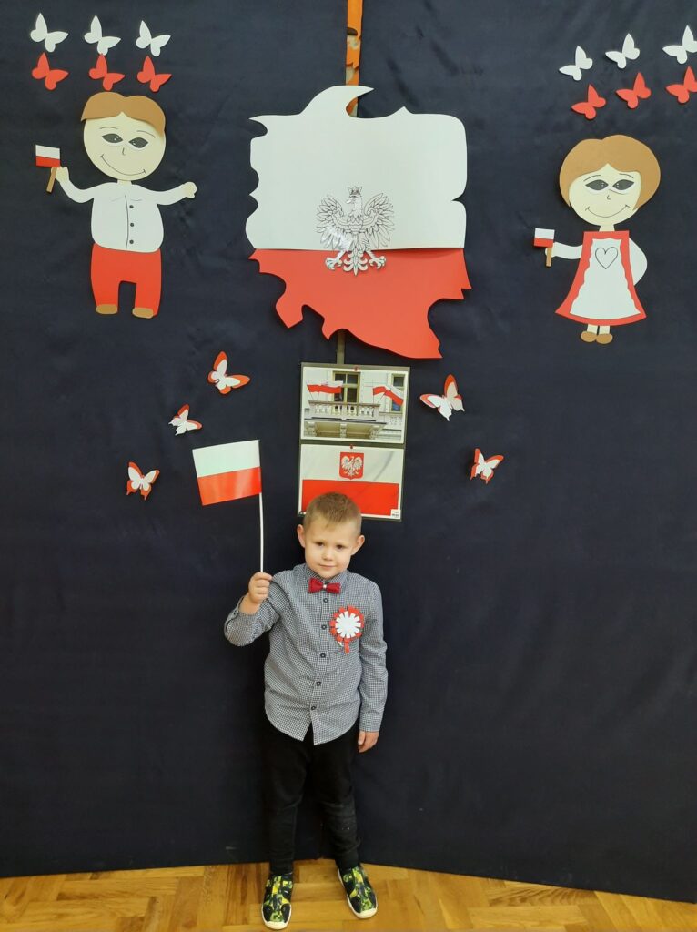 11.11.2020 r. z okazji 102 Rocznicy Odzyskania Niepodległości przez Polskę dzieci z przedszkola „Kraina Uśmiechu w Ostrowie” przedstawiły program artystyczny pt „Moja ojczyzna”. Pani Kinga Cichoń zadbała o piękną dekorację i odświętne stroje dzieci. Na program składała się patriotyczna piosenka oraz taniec. Przedszkolaki zaprezentowały występ dzieciom z oddziału przedszkolnego. Program bardzo im się podobał.  Na zakończenie przedstawienia dyrektor szkoły Grażyna Balawender podarowała wszystkim dzieciom chorągiewki, aby udekorowały swoje domy.