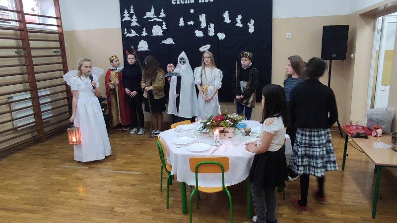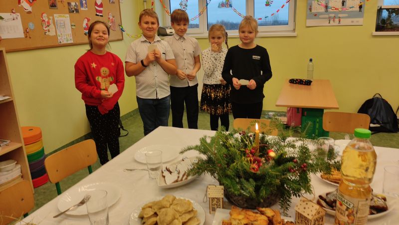 Śpiew kolęd i zapach wigilijnych potraw unosił się na szkolnych korytarzach, a serca uczniów i ich wychowawców wypełniała niesamowita radość.