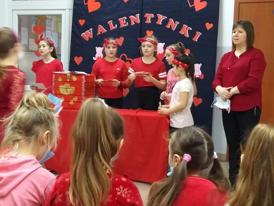 Uczniowie klasy IV w ramach zajęć rozwijających z języka polskiego przygotowali krótki program artystyczny związany z Walentynkami.